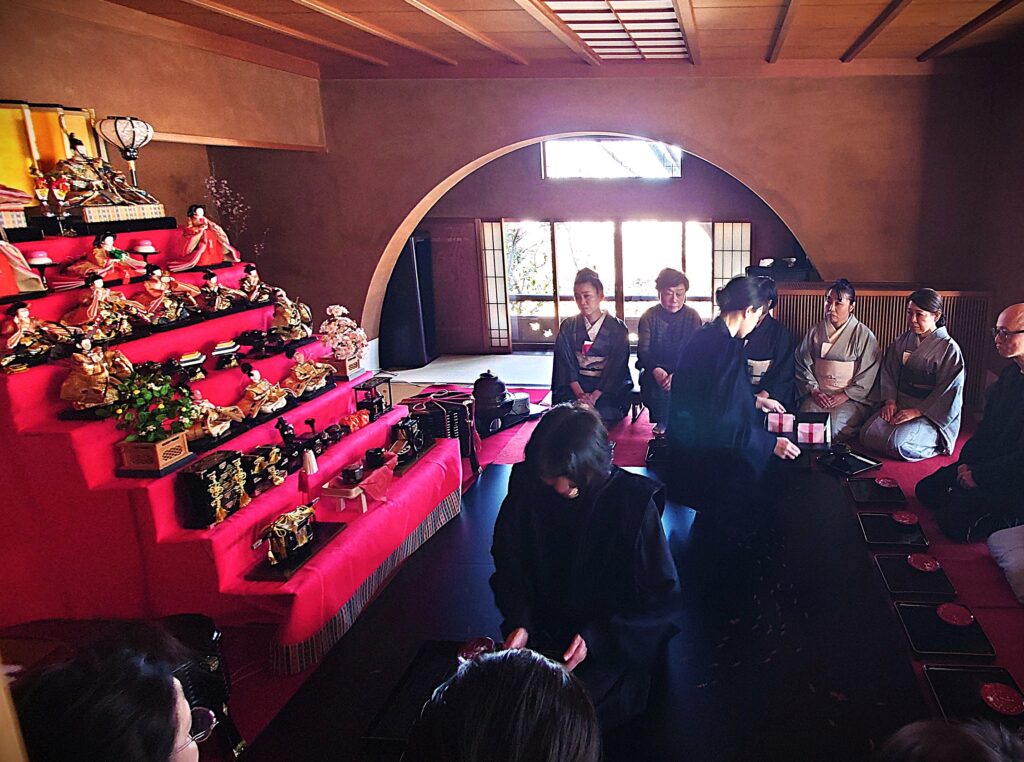 大佛次郎記念館の和室では、和流(やわるる)茶会による、お雛様と漆塗りの金魚とともに喫するお茶会が開催されました。