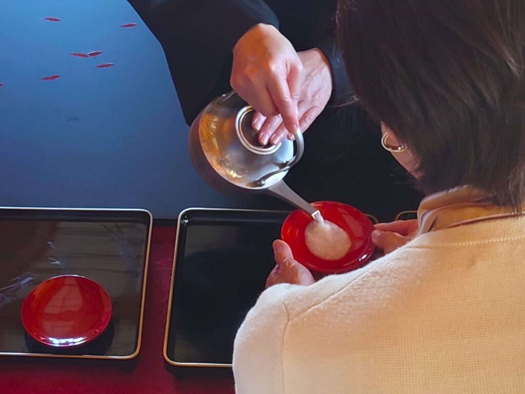 まず一献。ひな祭りにふさわしく、甘酒が供されていました。
