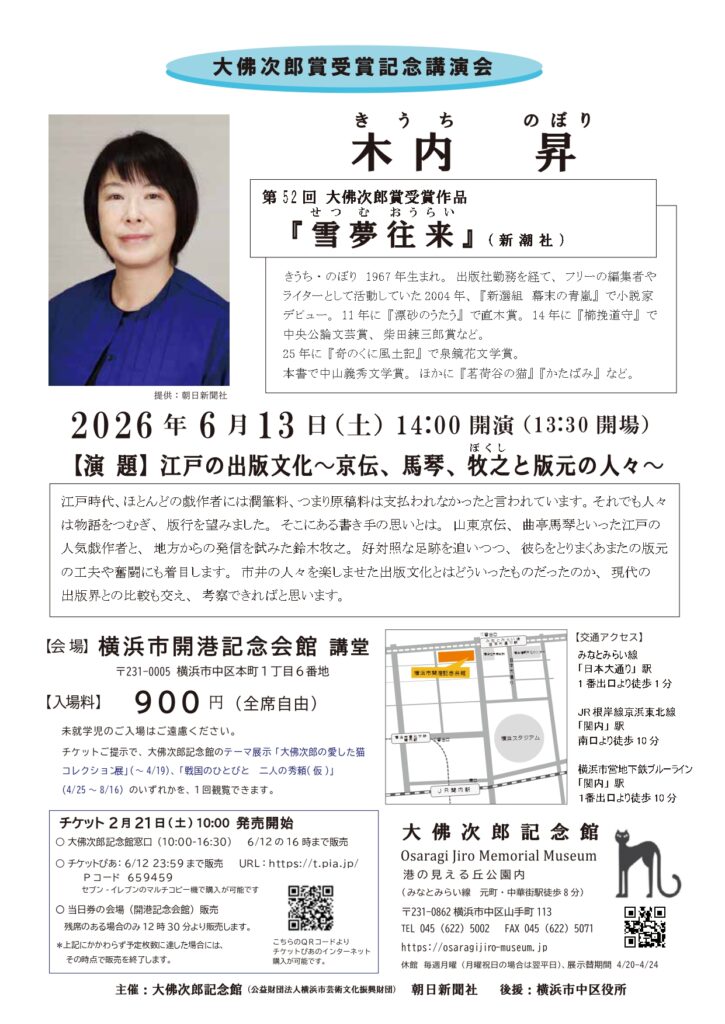 大佛次郎記念館 窓口での販売(10:00-16:00 2月21日(土)~6月12日(金))